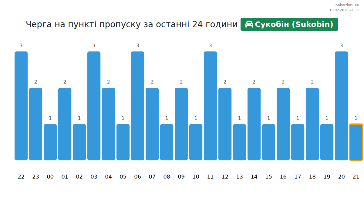 Аналіз черги на кордоні на пункті пропуску Сукобін (Sukobin) - легковий автомобіль за вчора