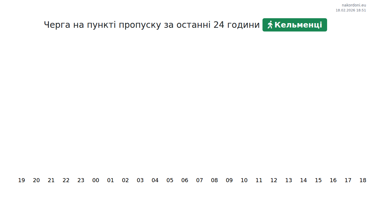 На пункті пропуску Кельменці очікуваний час очікування для автомобілів становить 15-15 хвилин. Рекомендуємо уникати пікових годин (07:00, 08:00, 09:00) для швидшого проїзду. Найкращий час для перетину кордону — з 10:00 до 12:00.