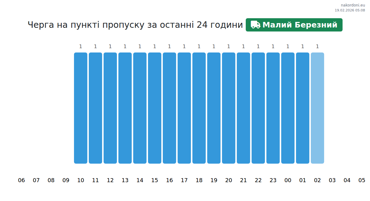 Для уникнення довгих черг на кордоні на пункті пропуску Малий Березний - авто, рекомендуємо планувати перетин кордону в години найменшого навантаження. Згідно з даними за минулу добу, найменша кількість автомобілів спостерігалася між 4:00 та 5:00 годинами. Це ідеальний час для перетину кордону, щоб зекономити час і уникнути затримок.