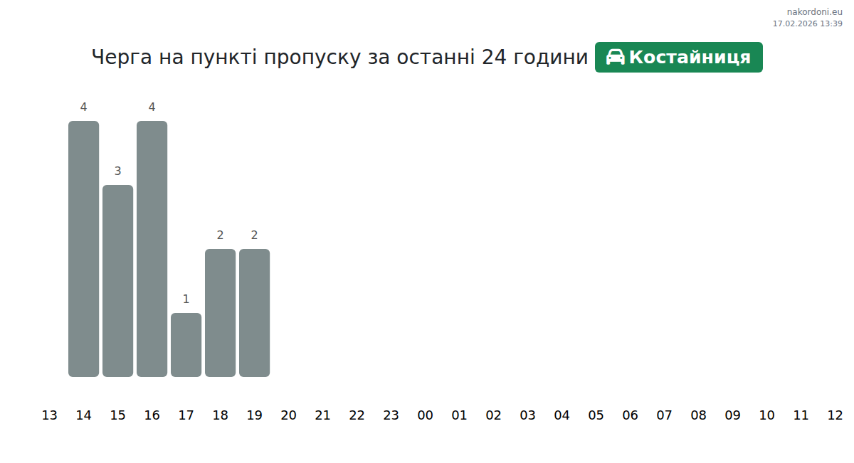 За період 17.02.2026 з 00:00 по 23:59 на кордоні на пункті пропуску Костайниця - легковий автомобіль були зафіксовані наступні ключові моменти: