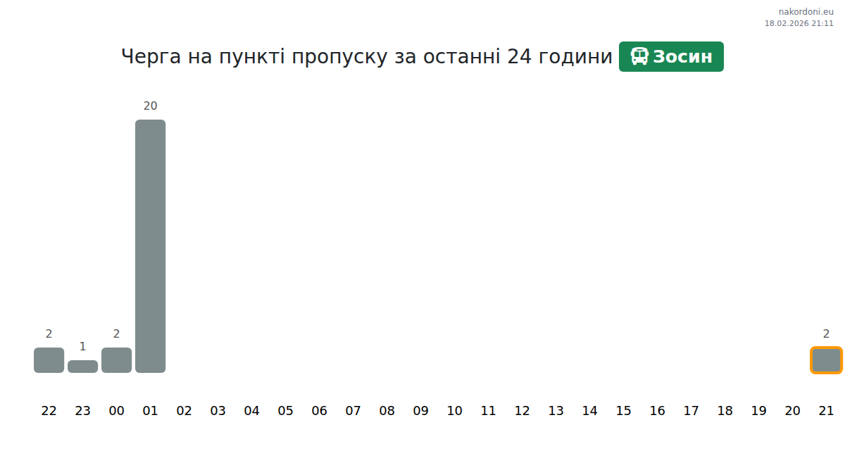 Аналіз черги на кордоні на пункті пропуску Зосин - автобус за вчора