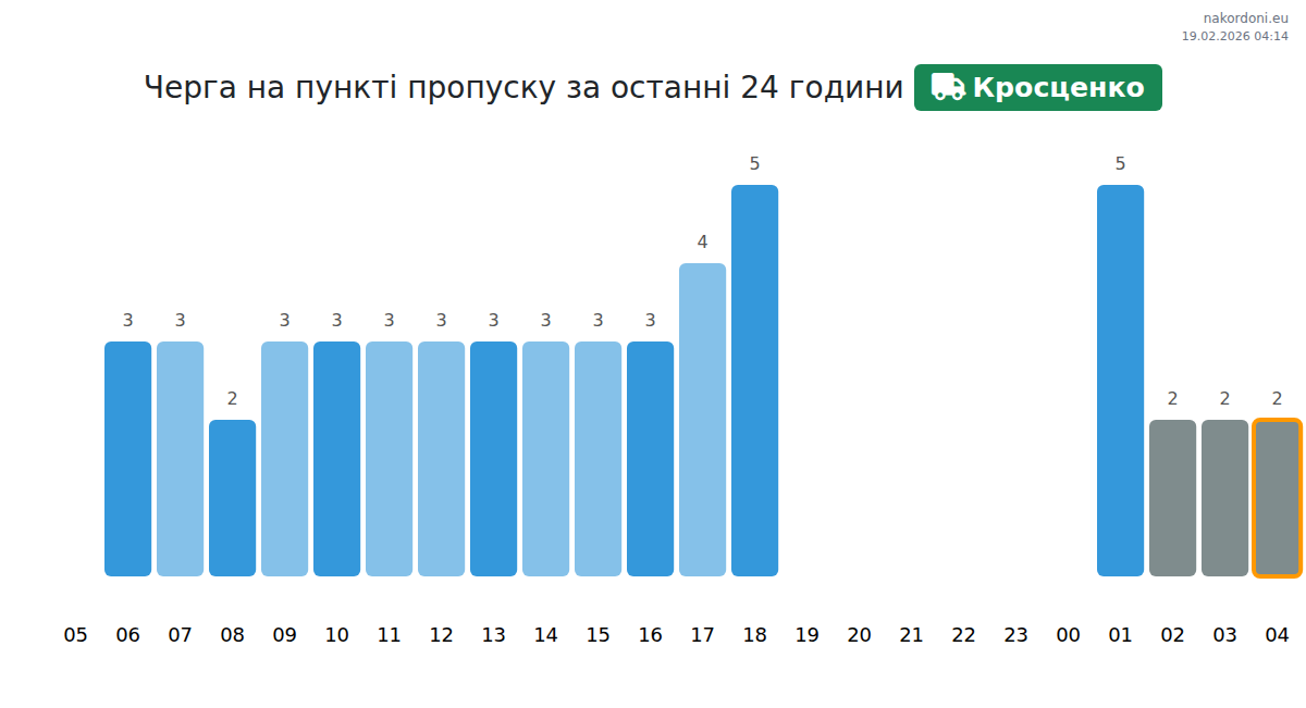 Для уникнення довгих черг на кордоні на пункті пропуску Кросценко - авто, рекомендуємо планувати перетин кордону в години найменшого навантаження. Згідно з даними за минулу добу, найменша кількість автомобілів спостерігалася між 5:00 та 7:00 годинами. Це ідеальний час для перетину кордону, щоб зекономити час і уникнути затримок.